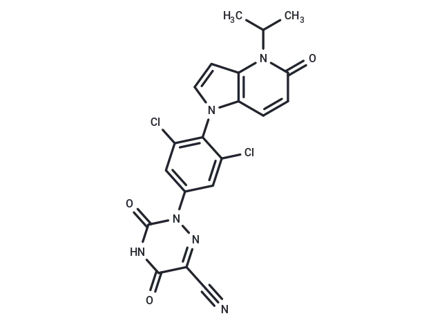 – ClC1=C(N2C3=C(C=C2)N(C(C)C)C(=O)C=C3)C(Cl)=CC(=C1)N4N=C(C#N)C(=O)NC4=O
