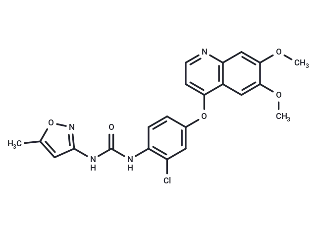 – O(C=1C2=C(C=C(OC)C(OC)=C2)N=CC1)C3=CC(Cl)=C(NC(NC=4C=C(C)ON4)=O)C=C3