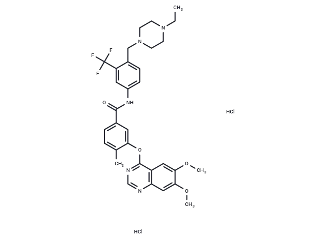 – O=C(C1=CC=C(C)C(OC2=NC=NC3=C2C=C(OC)C(OC)=C3)=C1)NC4=CC=C(CN5CCN(CC5)CC)C(C(F)(F)F)=C4.Cl.Cl