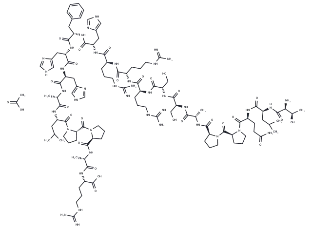 – CC(O)=O.N=C(N)NCCC[C@@H](C(O)=O)NC([C@H](C)NC([C@H]1N(C([C@H]2N(C([C@H](CC(C)C)NC([C@H](C)NC([C@H](CC3=CNC=N3)NC([C@H](CC4=CNC=N4)NC([C@H](CC5=CC=CC=C5)NC([C@H](CC6=CNC=N6)NC([C@H](CCCNC(N)=N)NC([C@H](CCCNC(N)=N)NC([C@H](CCCNC(N)=N)NC([C@H](CO)NC([C@H](CO)NC([C@H](C)NC([C@H]7N(C([C@H]8N(C([C@H](CCC(N)=O)NC([C@H](CC(C)C)NC([C@H]([C@H](O)C)N)=O)=O)=O)CCC8)=O)CCC7)=O)=O)=O)=O)=O)=O)=O)=O)=O)=O)=O)=O)=O)CCC2)=O)CCC1)=O)=O