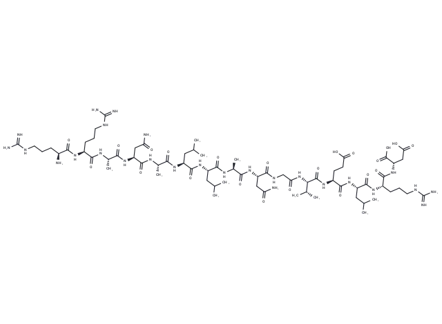 – CC(C)C[C@H](NC(=O)[C@H](C)NC(=O)[C@H](CC(N)=O)NC(=O)[C@H](C)NC(=O)[C@H](CCCNC(N)=N)NC(=O)[C@@H](N)CCCNC(N)=N)C(=O)N[C@@H](CC(C)C)C(=O)N[C@@H](C)C(=O)N[C@@H](CC(N)=O)C(=O)NCC(=O)N[C@@H](C(C)C)C(=O)N[C@@H](CCC(O)=O)C(=O)N[C@@H](CC(C)C)C(=O)N[C@@H](CCCNC(N)=N)C(=O)N[C@@H](CC(O)=O)C(O)=O |@@:75|
