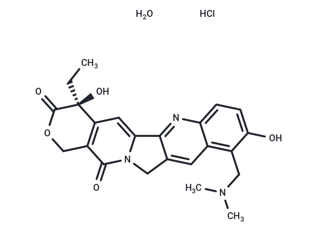 – Topotecan hydrochloride hydrate is an orally active Topoisomerase I inhibitor with anticancer properties capable of blocking the cell cycle in the G0/G1 and S phases and inducing apoptosis.