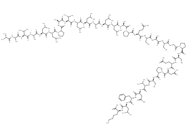 – CC(C)C[C@H](NC(=O)[C@H](C)NC(=O)[C@H](CC(C)C)NC(=O)[C@H](CC(C)C)NC(=O)[C@@H](NC(=O)[C@H](C)NC(=O)[C@@H]1CCCN1C(=O)[C@H](CC(C)C)NC(=O)[C@H](CC(C)C)NC(=O)[C@H](C)NC(=O)[C@@H](NC(=O)[C@H](C)NC(=O)[C@H](C)N)C(C)C)C(C)C)C(=O)N[C@@H](CC(C)C)C(=O)N[C@@H](C)C(=O)N1CCC[C@H]1C(=O)N[C@@H](CCC(O)=O)C(=O)N[C@@H](CO)C(=O)N[C@@H](C)C(=O)N[C@@H](CO)C(=O)NCC(=O)N1CCC[C@H]1C(=O)N[C@@H](CO)C(=O)N[C@@H](CCC(O)=O)C(=O)N[C@@H](CC(O)=O)C(=O)N1CCC[C@H]1C(=O)N[C@@H](CO)C(=O)N[C@@H](C(C)C)C(=O)N[C@@H](CC(N)=O)C(=O)N[C@@H](Cc1ccccc1)C(=O)N[C@@H](CC(C)C)C(=O)N[C@@H](CCCCN)C(O)=O