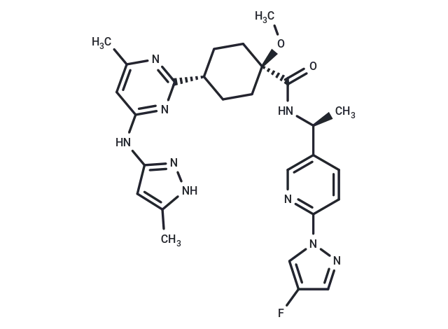 – C(N[C@@H](C)C=1C=CC(=NC1)N2N=CC(F)=C2)(=O)[C@]3(OC)CC[C@@H](CC3)C=4N=C(NC5=NNC(C)=C5)C=C(C)N4