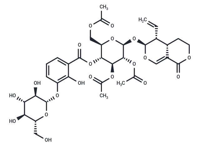 – CC(=O)OC[C@H]1O[C@@H](O[C@@H]2OC=C3[C@@H](CCOC3=O)[C@H]2C=C)[C@H](OC(C)=O)[C@@H](OC(C)=O)[C@@H]1OC(=O)c1cccc(O[C@@H]2O[C@H](CO)[C@@H](O)[C@H](O)[C@H]2O)c1O