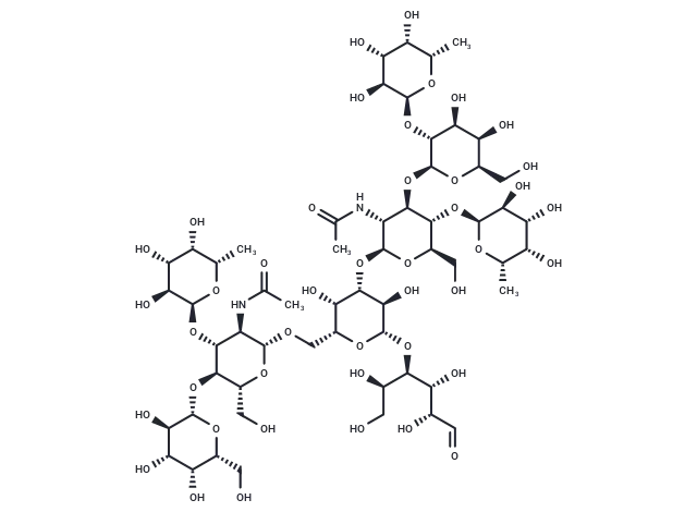 – O[C@@H]([C@@H]([C@@H]([C@@H](O1)C)O)O)[C@@H]1O[C@H]([C@H](O[C@H]([C@@H]2NC(C)=O)O[C@@H]3[C@H]([C@@H](O[C@@H]([C@@H]3O)CO[C@H]4[C@@H]([C@H]([C@@H]([C@H](O4)CO)O[C@@H]5O[C@@H]([C@@H]([C@@H]([C@H]5O)O)O)CO)O[C@H]6[C@H]([C@@H]([C@@H]([C@@H](O6)C)O)O)O)NC(C)=O)O[C@H]([C@H](O)CO)[C@H](O)[C@@H](O)C=O)O)CO)[C@@H]2O[C@H]7[C@@H]([C@H]([C@H]([C@H](O7)CO)O)O)O[C@H]8[C@H]([C@@H]([C@@H]([C@@H](O8)C)O)O)O