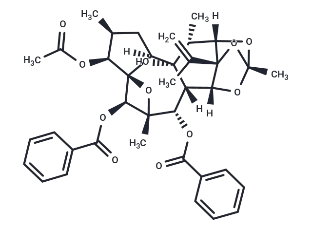 – [H][C@]12O[C@]3(C)O[C@]([H])([C@]4([H])[C@H](OC(=O)c5ccccc5)[C@@]5(C)O[C@@]6([C@@H]5OC(=O)c5ccccc5)[C@@H](OC(C)=O)[C@@H](C)C[C@@]6([H])[C@@]4(O)[C@@H]1C)[C@]2(O3)C(C)=C |TLB:8:6:1.2:49,46:1:6.5:49|