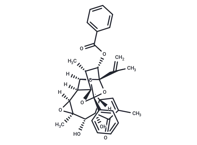 – [H][C@@]12O[C@]1(C)[C@@H](O)[C@]1(O)C(=O)C(C)=C[C@@]1([H])[C@]13O[C@@]4(O[C@]([H])([C@]21[H])[C@@](O4)([C@@H](OC(=O)c1ccccc1)[C@H]3C)C(C)=C)c1ccccc1 |c:13,TLB:41:18:22:36.24.26,1:22:24.25:19,THB:36:16:24.25:19,26:24:16.22.17:19,25:18:22:36.24.26|