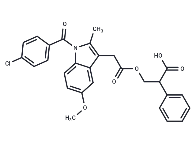 – C(=O)(N1C=2C(C(CC(OCC(C(O)=O)C3=CC=CC=C3)=O)=C1C)=CC(OC)=CC2)C4=CC=C(Cl)C=C4