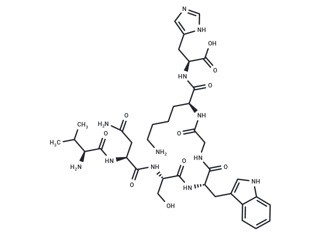 – C([C@H](NC([C@@H](NC([C@@H](NC([C@H](C(C)C)N)=O)CC(N)=O)=O)CO)=O)C(NCC(N[C@H](C(N[C@@H](CC1=CN=CN1)C(O)=O)=O)CCCCN)=O)=O)C=2C=3C(NC2)=CC=CC3