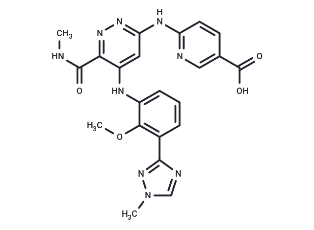 – O=C(O)C1=CN=C(C=C1)NC2=NN=C(C(=O)NC)C(=C2)NC3=CC=CC(C=4N=CN(N4)C)=C3OC