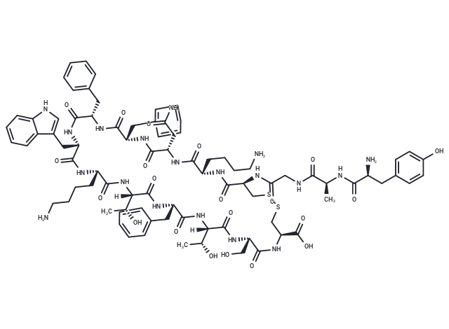 – C(C=1C=2C(NC1)=CC=CC2)[C@@H]3NC(=O)[C@H](CC4=CC=CC=C4)NC(=O)[C@H](CC5=CC=CC=C5)NC(=O)[C@H](CC(N)=O)NC(=O)[C@H](CCCCN)NC(=O)[C@@H](NC(CNC([C@@H](NC([C@H](CC6=CC=C(O)C=C6)N)=O)C)=O)=O)CSSC[C@@H](C(O)=O)NC(=O)[C@H](CO)NC(=O)[C@]([C@@H](C)O)(NC(=O)[C@H](CC7=CC=CC=C7)NC(=O)[C@]([C@@H](C)O)(NC(=O)[C@H](CCCCN)NC3=O)[H])[H]