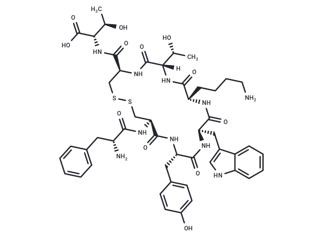 – [Tyr3]Octreotate is a long peptide compound containing 8 amino acids and is a functional DOTA chelating agent with covalent bonds. [Tyr3]Octreotate binds to transmembrane receptors of SSR2-active NETs and is actively transported into cells by endocytosis, which may increase the required double-stranded DNA breaks and is a potential drug for tumor treatment.