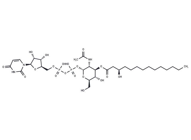 – O(P(OP(OC[C@H]1O[C@H]([C@H](O)[C@@H]1O)N2C(=O)NC(=O)C=C2)(=O)O)(=O)O)[C@@H]3[C@H](NC(C)=O)[C@@H](OC(C[C@@H](CCCCCCCCCCC)O)=O)[C@H](O)[C@@H](CO)O3