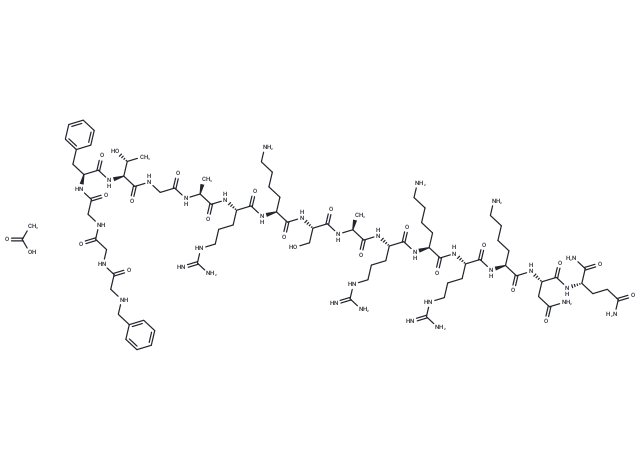 – CC(O)=O.O=C(N)[C@@H](NC([C@@H](NC([C@@H](NC([C@@H](NC([C@@H](NC([C@@H](NC([C@@H](NC([C@@H](NC([C@@H](NC([C@@H](NC([C@@H](NC(CNC([C@@H](NC([C@@H](NC(CNC(CNC(CNCC1=CC=CC=C1)=O)=O)=O)CC2=CC=CC=C2)=O)[C@H](O)C)=O)=O)C)=O)CCCNC(N)=N)=O)CCCCN)=O)CO)=O)C)=O)CCCNC(N)=N)=O)CCCCN)=O)CCCNC(N)=N)=O)CCCCN)=O)CC(N)=O)=O)CCC(N)=O