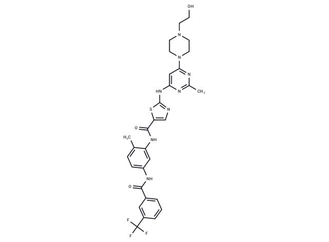 – Cc1nc(Nc2ncc(s2)C(=O)Nc2cc(NC(=O)c3cccc(c3)C(F)(F)F)ccc2C)cc(n1)N1CCN(CCO)CC1