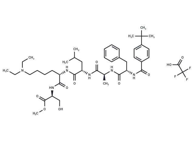 – CCN(CC)CCCC[C@@H](C(=O)N[C@@H](CO)C(=O)OC)NC(=O)[C@H](CC(C)C)NC(=O)[C@H](C)NC(=O)[C@H](CC1=CC=CC=C1)NC(=O)C2=CC=C(C=C2)C(C)(C)C.C(=O)(C(F)(F)F)O