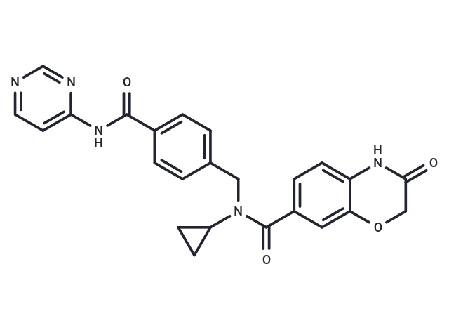 – O=C(Nc1ccncn1)c1ccc(CN(C2CC2)C(=O)c2ccc3NC(=O)COc3c2)cc1