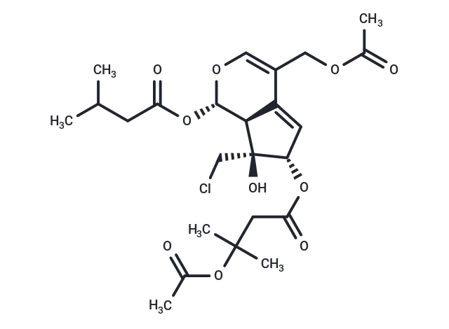 – CC(C)CC(=O)O[C@@H]1OC=C(COC(C)=O)C2=C[C@H](OC(=O)CC(C)(C)OC(C)=O)[C@](O)(CCl)[C@@H]12