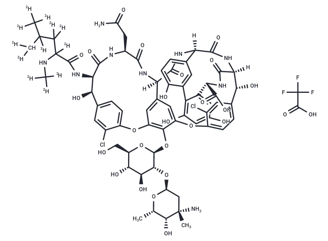 – ClC1=CC([C@H]([C@H](C(N[C@H](C(N[C@@]2([H])C(N[C@]3([H])C4=CC=C(O)C(C5=C(O)C=C(O)C=C5[C@H](NC([C@](NC3=O)([H])[C@@H](C6=CC=C(O7)C(Cl)=C6)O)=O)C(O)=O)=C4)=O)=O)CC(N)=O)=O)NC(C(NC([2H])([2H])[2H])([2H])C([2H])([2H])C(C([2H])[2H])([2H])C([2H])([2H])[2H])=O)O)=CC=C1OC8=C(C7=CC2=C8)O[C@H]9[C@@H]([C@H]([C@@H]([C@H](O9)CO)O)O)O[C@H]%10C[C@](N)([C@@H]([C@@H](O%10)C)O)C.O=C(O)C(F)(F)F