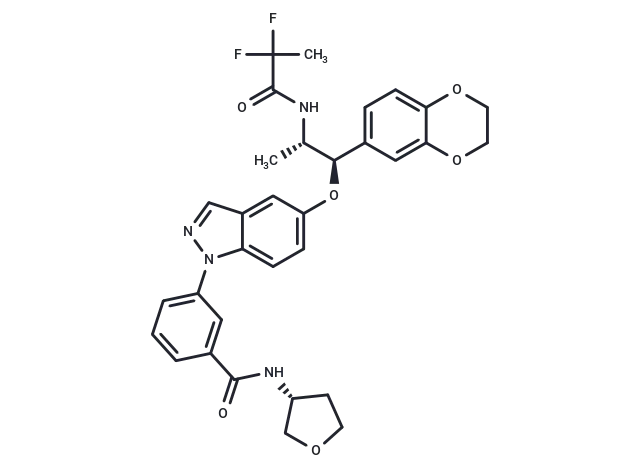 – C[C@H](NC(=O)C(C)(F)F)[C@H](Oc1ccc2n(ncc2c1)-c1cccc(c1)C(=O)N[C@@H]1CCOC1)c1ccc2OCCOc2c1