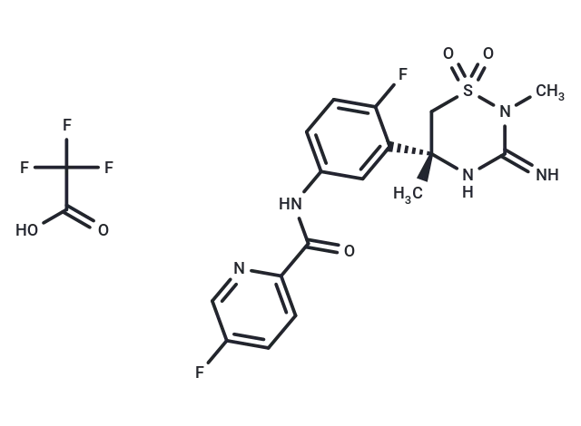 – OC(=O)C(F)(F)F.CN1C(=N)N[C@@](C)(CS1(=O)=O)c1cc(NC(=O)c2ccc(F)cn2)ccc1F