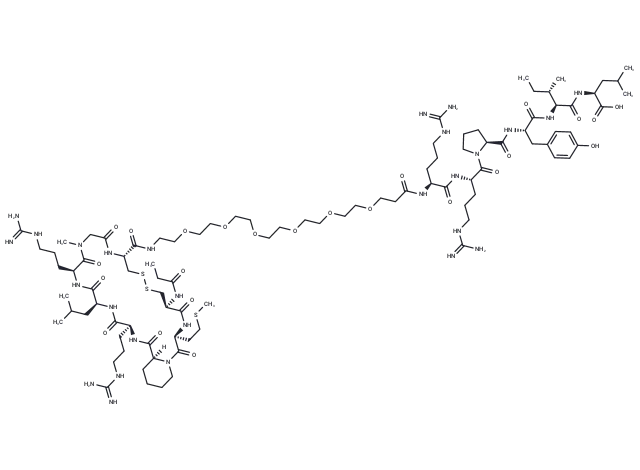 – C(N[C@@H](CC1=CC=C(O)C=C1)C(N[C@H](C(N[C@@H](CC(C)C)C(O)=O)=O)[C@H](CC)C)=O)(=O)[C@H]2N(C([C@@H](NC([C@@H](NC(CCOCCOCCOCCOCCOCCOCCNC(=O)[C@@H]3CSSC[C@@H](NC(CC)=O)C(=O)N[C@@H](CCSC)C(=O)N4[C@](C(=O)N[C@@H](CCCNC(=N)N)C(=O)N[C@@H](CC(C)C)C(=O)N[C@@H](CCCNC(=N)N)C(=O)N(C)CC(=O)N3)(CCCC4)[H])=O)CCCNC(=N)N)=O)CCCNC(=N)N)=O)CCC2