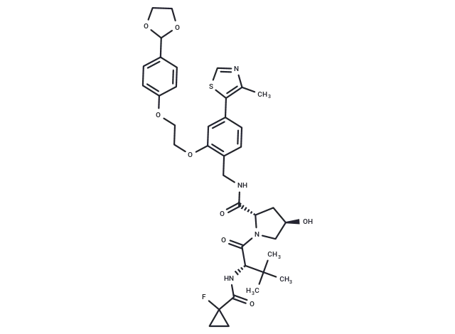 – C([C@@H](NC(=O)C1(F)CC1)C(C)(C)C)(=O)N2[C@H](C(NCC3=C(OCCOC4=CC=C(C=C4)C5OCCO5)C=C(C=C3)C=6SC=NC6C)=O)C[C@@H](O)C2
