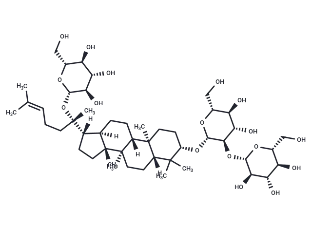 – [H][C@@]1([#6]-[#6][C@]2([#6])[C@]1([H])[#6]-[#6][C@]1([H])[C@@]3([#6])[#6]-[#6]-[#6@H](-[#8]-[#6@@H]-4-[#8]-[#6@H](-[#6]-[#8])-[#6@@H](-[#8])-[#6@H](-[#8])-[#6@H]-4-[#8]-[#6@@H]-4-[#8]-[#6@H](-[#6]-[#8])-[#6@@H](-[#8])-[#6@H](-[#8])-[#6@H]-4-[#8])C([#6])([#6])[C@]3([H])[#6]-[#6][C@@]21[#6])[C@]([#6])([#6]-[#6][#6]=[#6]([#6])-[#6])[#8]-[#6@@H]-1-[#8]-[#6@H](-[#6]-[#8])-[#6@@H](-[#8])-[#6@H](-[#8])-[#6@H]-1-[#8]