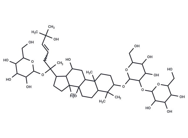 – CC(C)(O)C=CCC(C)(OC1OC(CO)C(O)C(O)C1O)C1CCC2(C)C1C(O)CC1C3(C)CCC(OC4OC(CO)C(O)C(O)C4OC4OC(CO)C(O)C(O)C4O)C(C)(C)C3CCC21C |w:5.5|