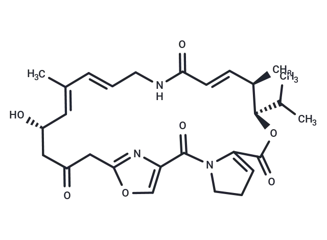 – CC(C)[C@H]1OC(=O)C2=CCCN2C(=O)c2coc(CC(=O)C[C@H](O)C=C(/C)C=CCNC(=O)C=C[C@H]1C)n2