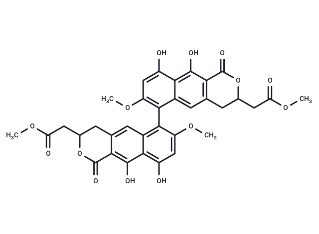 – COC(=O)CC1Cc2cc3c(c(OC)cc(O)c3c(O)c2C(=O)O1)-c1c(OC)cc(O)c2c(O)c3C(=O)OC(CC(=O)OC)Cc3cc12
