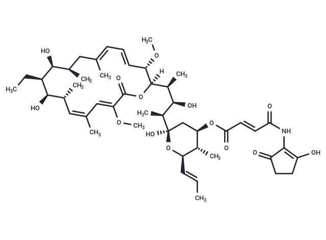 – [H][C@@]1(OC(=O)C(OC)=CC(C)=C/[C@@H](C)[C@@H](O)[C@@H](CC)[C@@H](O)[C@H](C)CC(C)=CC=C[C@@H]1OC)[C@@H](C)[C@@H](O)[C@H](C)[C@@]1(O)C[C@@H](OC(=O)C=CC(=O)NC2=C(O)CCC2=O)[C@H](C)[C@H](O1)C=CC |c:10,51,t:7,25,27|