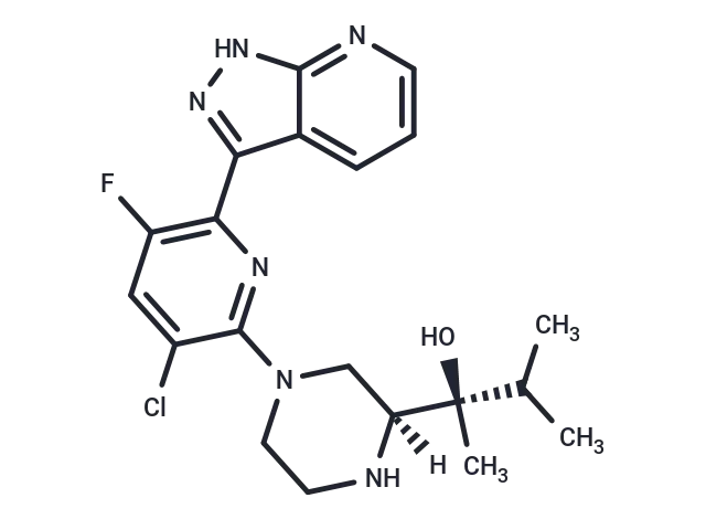 – FC1=C(C=2C=3C(NN2)=NC=CC3)N=C(C(Cl)=C1)N4C[C@@]([C@](C(C)C)(C)O)(NCC4)[H]