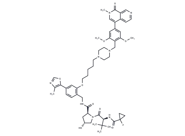– CN1C=C(C=2C(C1=O)=CN=CC2)C3=CC(OC)=C(CN4CCN(CCCCCOC5=C(CNC(=O)[C@H]6N(C([C@@H](NC(=O)C7(F)CC7)C(C)(C)C)=O)C[C@H](O)C6)C=CC(=C5)C=8SC=NC8C)CC4)C(OC)=C3