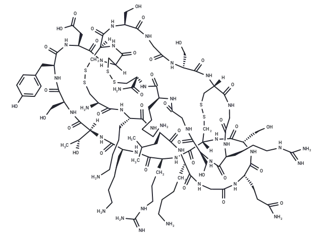 – C([C@H]1C(=O)N[C@@H](CC(O)=O)C(=O)NC2(C(=O)N[C@@]3(C(=O)N[C@@H](CO)C(=O)NCC(=O)N[C@@H](CO)C(=O)N[C@@](CSSC[C@@](C(=O)N[C@@H](CCCNC(=N)N)C(=O)N[C@@H](CCCCN)C(=O)N[C@@]([C@@H](C)O)(C(=O)N[C@@H](CO)C(=O)N1)[H])(NC(=O)[C@H](CO)NC(=O)[C@H](CCC(N)=O)NC(=O)CNC(=O)[C@H](CCCCN)NC(=O)[C@H](CC(C)C)NC(=O)[C@H](CCCCN)NC(=O)[C@@H](N)CSSC3)[H])(C(=O)NCC(=O)N[C@@H](CCCNC(=N)N)C(=O)N[C@@H](CO)C(=O)NCC(=O)N[C@@H](CCCCN)C(=O)N[C@H](C(N)=O)CSSC2)[H])[H])[H])C4=CC=C(O)C=C4