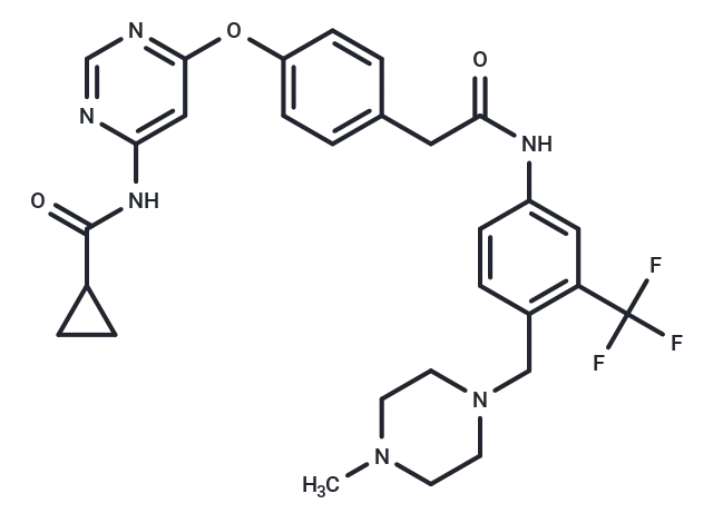 – C(C1=C(C(F)(F)F)C=C(NC(CC2=CC=C(OC=3C=C(NC(=O)C4CC4)N=CN3)C=C2)=O)C=C1)N5CCN(C)CC5