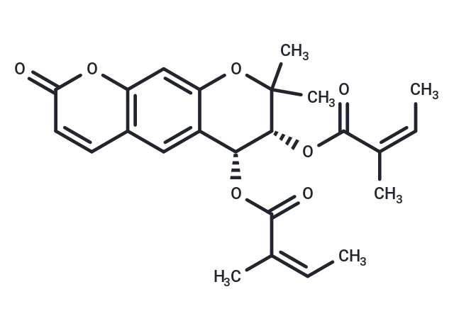 – O(C(/C(=CC)/C)=O)[C@@H]1C=2C(=CC3=C(C2)C=CC(=O)O3)OC(C)(C)[C@@H]1OC(/C(=CC)/C)=O
