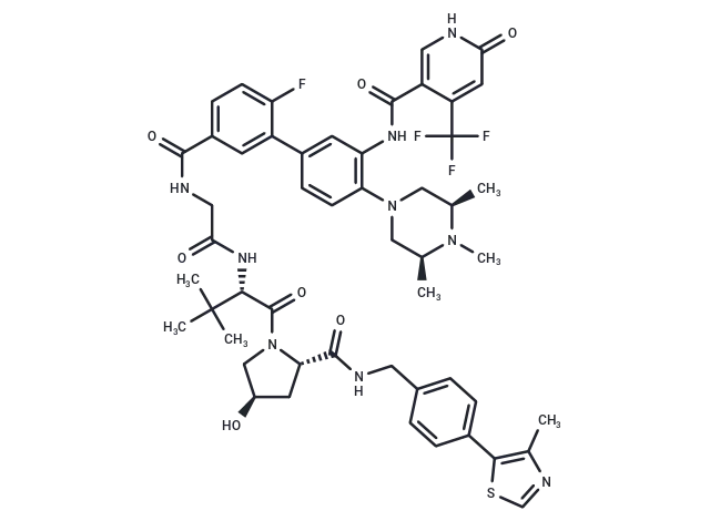– N(C(=O)C=1C(C(F)(F)F)=CC(=O)NC1)C2=C(C=CC(=C2)C3=CC(C(NCC(N[C@H](C(=O)N4[C@H](C(NCC5=CC=C(C=C5)C6=C(C)N=CS6)=O)C[C@@H](O)C4)C(C)(C)C)=O)=O)=CC=C3F)N7C[C@@H](C)N(C)[C@@H](C)C7