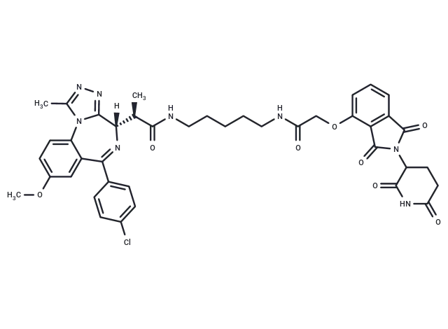 – [H][C@]1(N=C(c2ccc(Cl)cc2)c2cc(OC)ccc2-n2c(C)nnc12)[C@@H](C)C(=O)NCCCCCNC(=O)COc1cccc2C(=O)N(C3CCC(=O)NC3=O)C(=O)c12