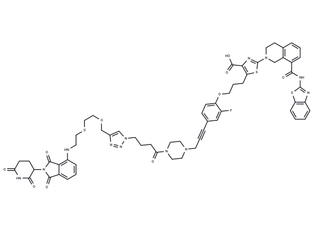 – O=C1N(C(C2=C(NCCOCCOCC3=CN(N=N3)CCCC(N4CCN(CC4)CC#CC5=CC=C(OCCCC6=C(C(O)=O)N=C(N7CCC(C=CC=C8C(NC9=NC(C=CC=C%10)=C%10S9)=O)=C8C7)S6)C(F)=C5)=O)C=CC=C21)=O)C%11C(NC(CC%11)=O)=O
