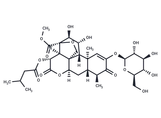 – C(OC)(=O)[C@]12[C@]3([C@]4([C@@]([C@]5(C)[C@@](C[C@]4(OC(=O)[C@@H]3OC(CC(C)C)=O)[H])([C@H](C)C(=O)C(O[C@@H]6O[C@H](CO)[C@@H](O)[C@H](O)[C@H]6O)=C5)[H])([C@@H](O)[C@@H]1O)[H])CO2)[H]