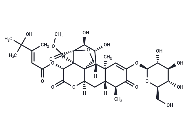 – C(OC)(=O)[C@]12[C@]3([C@]4([C@@]([C@]5(C)[C@@](C[C@]4(OC(=O)[C@@H]3OC(/C=C(/C(C)(C)O)C)=O)[H])([C@H](C)C(=O)C(O[C@@H]6O[C@H](CO)[C@@H](O)[C@H](O)[C@H]6O)=C5)[H])([C@@H](O)[C@@H]1O)[H])CO2)[H]