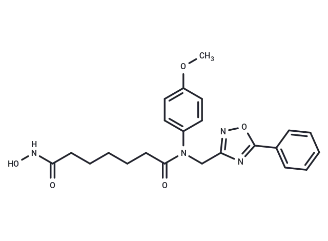 – O=C(NO)CCCCCC(=O)N(C1=CC=C(OC)C=C1)CC2=NOC(=N2)C=3C=CC=CC3