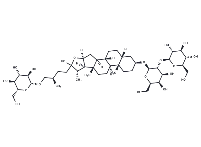 – C[C@@]12[C@]([C@]3([C@](CC1)([C@]4(C)[C@](CC3)(C[C@@H](O[C@H]5[C@H](O[C@@H]6O[C@H](CO)[C@@H](O)[C@H](O)[C@H]6O)[C@@H](O)[C@@H](O)[C@@H](CO)O5)CC4)[H])[H])[H])(C[C@]7([C@@]2([C@H](C)C(CC[C@H](CO[C@@H]8O[C@H](CO)[C@@H](O)[C@H](O)[C@H]8O)C)(O)O7)[H])[H])[H]