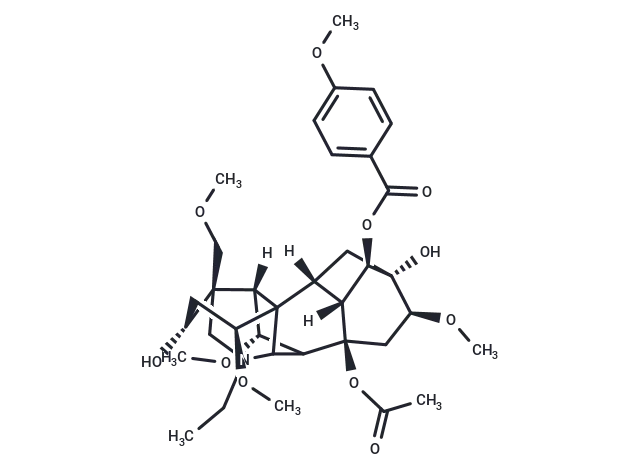 – [H][C@@]12C[C@@]3(O)[C@H](OC(=O)c4ccc(OC)cc4)[C@]1([H])[C@@](C[C@@H]3OC)(OC(C)=O)C1[C@H](OC)[C@@]3([H])C22C1N(CC)C[C@]3(COC)[C@H](O)C[C@@H]2OC