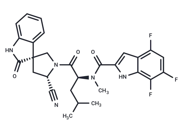 – O=C1[C@]2(C=3C(N1)=CC=CC3)CN(C([C@@H](N(C(=O)C4=CC=5C(N4)=C(F)C(F)=CC5F)C)CC(C)C)=O)[C@H](C#N)C2