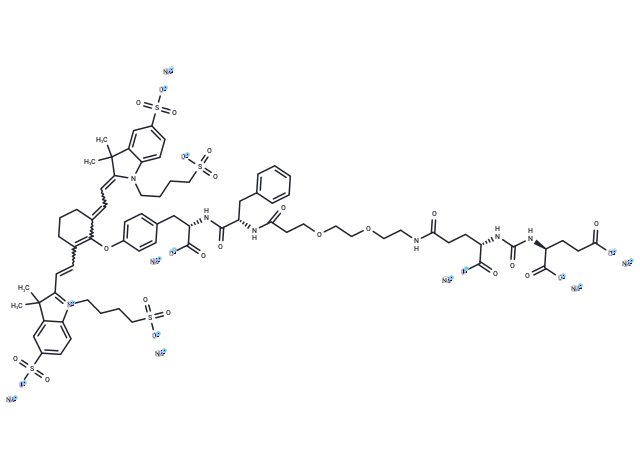 – O=S(CCCCN1C2=CC=C(S(=O)([O-])=O)C=C2C(C)(C1=CC=C3C(OC4=CC=C(C=C4)C[C@@H](C([O-])=O)NC([C@@H](NC(CCOCCOCCNC(CC[C@@H](C([O-])=O)NC(N[C@H](C([O-])=O)CCC([O-])=O)=O)=O)=O)CC5=CC=CC=C5)=O)=C(CCC3)C=CC6=[N+](C7=CC=C(S(=O)([O-])=O)C=C7C6(C)C)CCCCS(=O)([O-])=O)C)([O-])=O.[Na+].[Na+].[Na+].[Na+].[Na+].[Na+].[Na+]