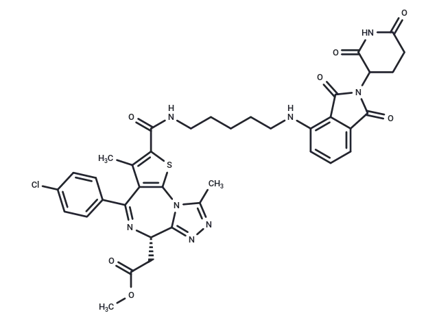 – CC=1C2=C(N3C([C@H](CC(OC)=O)N=C2C4=CC=C(Cl)C=C4)=NN=C3C)SC1C(NCCCCCNC5=C6C(C(=O)N(C6=O)C7C(=O)NC(=O)CC7)=CC=C5)=O